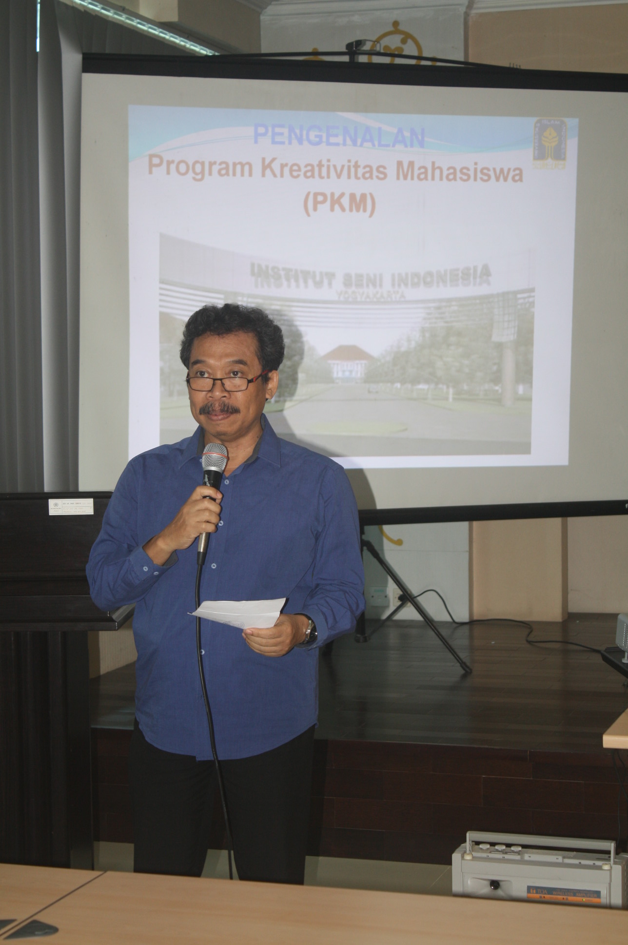 Pengenalan Program Kreativitas Mahasiswa (PKM) dilaksanakan pada hari Rabu, 23 November 2016 dimulai pukul 10.00 WIB sampai dengan selesai, bertempat di Ruang Sidang Lantai III Gedung Rektorat ISI Yogyakarta, dengan Pembicara Bapak Prof. Akhmad Fauzy, Direktur DPPM Universitas Islam Indonesia Yogyakarta. Acara dibuka oleh Pembantu Rektor III ISI Yogyakarta, Drs. Anusapati, M.F.A., serta sambutan dari Rektor ISI Yogyakarta, Prof. Dr. M. Agus Burhan, M.Hum. Turut hadir Pembantu Rektor I, dan sejumlah dosen ISI Yogyakarta.